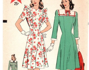 1940s Dress Sewing Pattern Rare 40s 50s Fashion Pattern Etsy